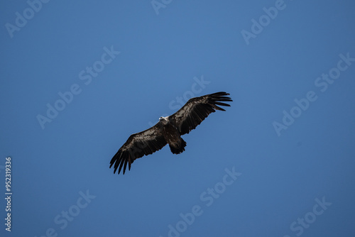 griffon vulture hunting in natural conditions in summer on the island of Crete in Greece