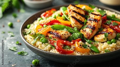 Grilled Chicken Salad with Colorful Vegetables and Quinoa