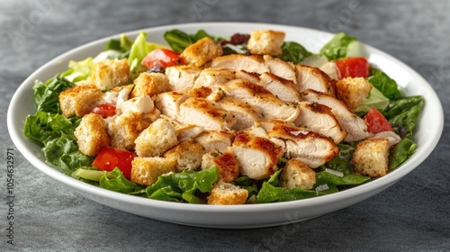 Grilled Chicken Salad with Fresh Vegetables and Croutons