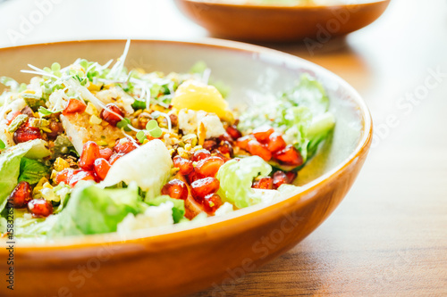 Grilled chicken with vegetable and pomegranate , fruits salad in plate - Color Filter Processing