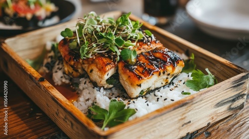 Grilled Fish on Rice with Fresh Garnish