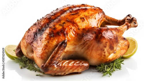 Grilled Full Chicken Isolated on White Background, Image Ai Generated
