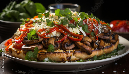 Grilled meat and vegetable plate, a healthy gourmet meal generated by AI