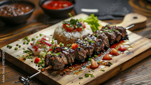 Grilled Meat Skewers with Rice and Salad Delicious Dinner