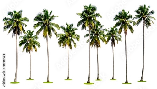 Group coconut palm trees isolated background