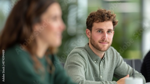 Group discussion on sustainable practices in training, Realistic, Natural and green hues, Detailed participants and materials