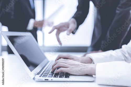 Group of business people busy discussing financial matter during