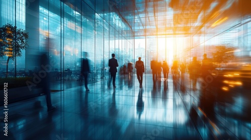 Group of Business people walking in the office corridor in night,People in business center walking at hall,motion go around at coworking space,Wide image,Concept of office life,co working space.