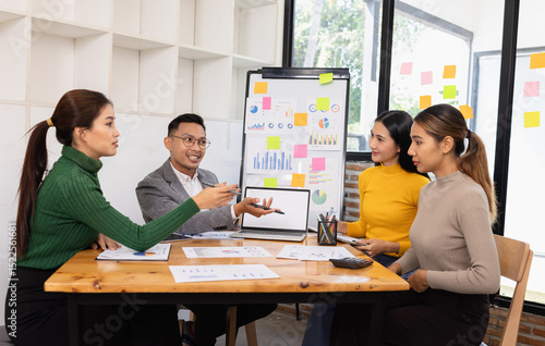 Group of business people working together with dashboard analysis and data management in conference room, Corporate business and dashboard to presentation concept.