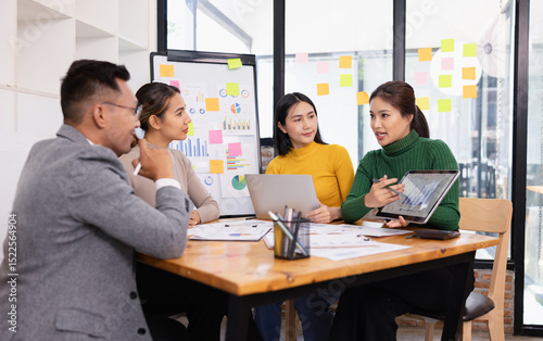 Group of business people working together with dashboard analysis and data management in conference room, Corporate business and dashboard to presentation concept.