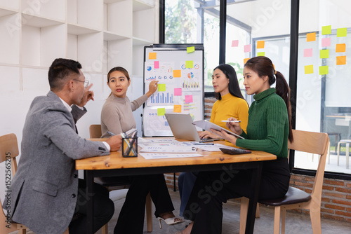 Group of business people working together with dashboard analysis and data management in conference room, Corporate business and dashboard to presentation concept.