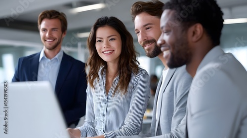 Group of business professionals in a modern office environment
