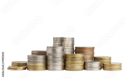 Group of Coin stacks on a white background