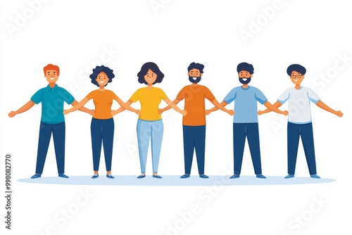 Group of diverse people holding hands in a line symbolizing teamwork unity and collaboration in a clean modern illustration with soft tones and minimal background