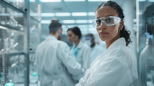 group of diverse scientists collaborating in a state-of-the-art laboratory to develop innovative solutions for climate change.,