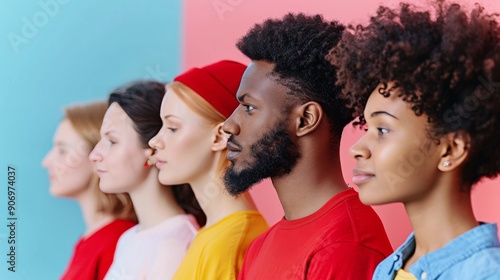 Group of Diverse Young Adults Smiling Against Neutral Background in Studio Setting
