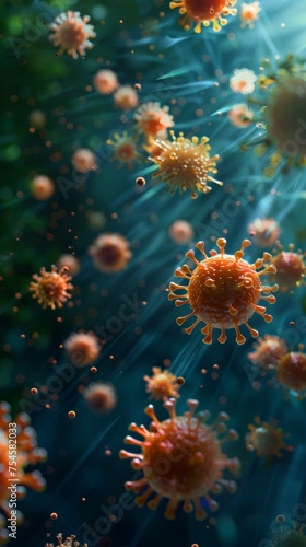 Group of Floating Germs, Airborne Particles Spreading in the Atmosphere