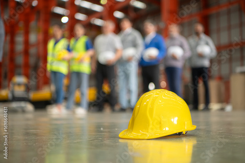 Group of Industrial worker inspecting inside a large metal tube in a factory