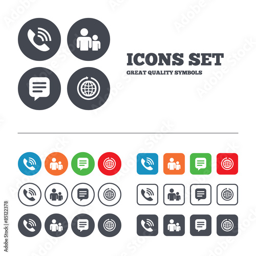 Group of people and phone call. Speech bubble.