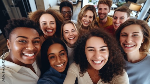 Group of people collaborating for diversity and professional happiness in workplace Generative AI