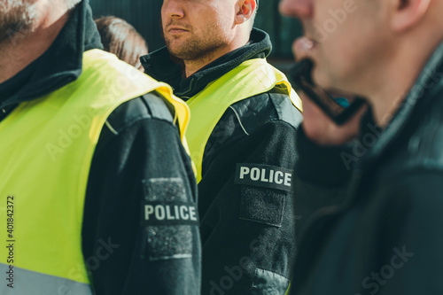 Group of police officers heading for intervention on the city streets