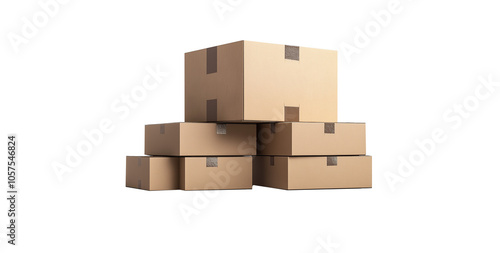 group of Several closed cardboard boxes PNG on transparent background generative ai