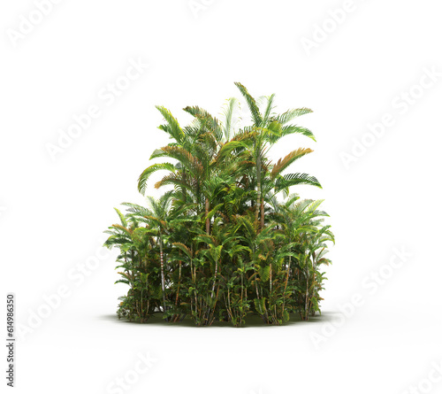 group of trees with a shadow on the ground, isolated on a white background, trees in the forest, 3D illustration, cg render
