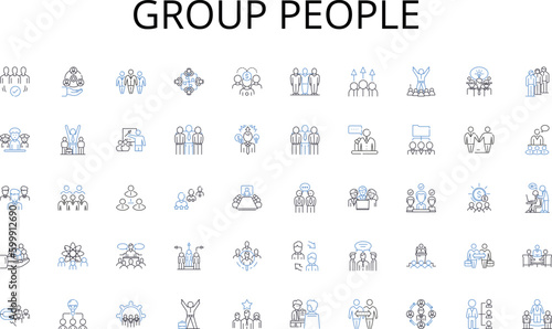 Group people line icons collection. Advertising, Branding, Campaign, Content, Conversion, Customer, Engagement vector and linear illustration. Influencer,Lead,Metrics outline signs set