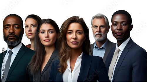 Group photo of a business team, collective photo of a business team, photo of a professional business team, business team made up of people from different cultures, on a transparent backgrounds