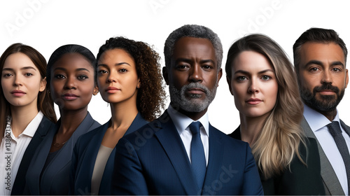 Group photo of a business team, collective photo of a business team, photo of a professional business team, business team made up of people from different cultures, on a transparent backgrounds