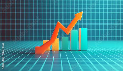 Growing Bar Chart with Upward Arrow in a Futuristic 3D Grid Design