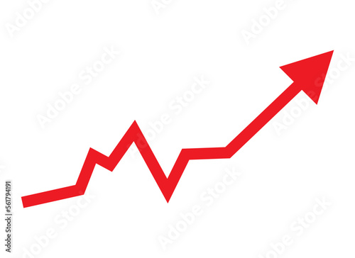 Growing business red flat arrow on white, Profit red arrow, Vector illustration.Business concept, growing chart. Concept of sales symbol icon with arrow moving up. Economic Arrow With Growing Trend.