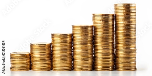 Growing columns of coins on a white background. Investments, financial markets