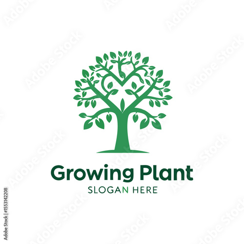 Growing plant vector logo featuring financial growth, wellness and health related branding