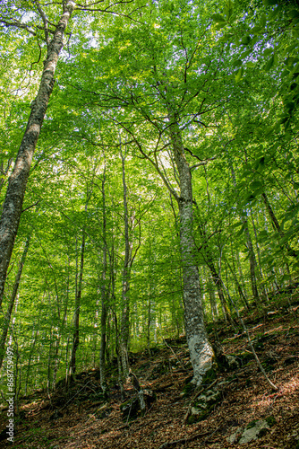 grown green trees in the forest in summer