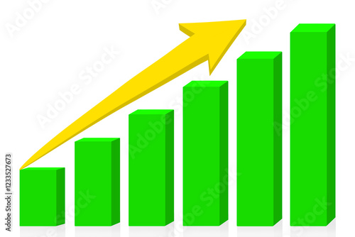 Growth bar graph with arrow, finance icon, business chart with arrow, diagram, business icon, bussines sign, bussines element, diagram element, finance element, icon, sign, 3d bussines element