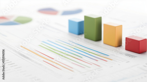Growth Chart: A vibrant and colorful visual representation of progress and upward trends. The image features wooden blocks stacked in a bar chart formation, symbolizing growth, development.