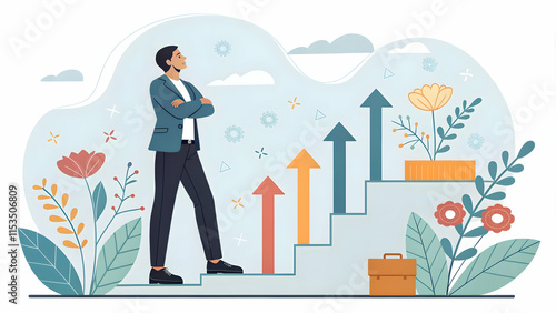 Growth Mindset and Sustained Effort Leading to Business Success Concept - Executive in Professional Setting with Empty Space
