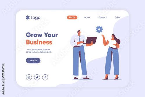 Growth your business landing page template. Teamwork and partnership Business communicate concept. Businessman and Businesswoman communication in business webpage, landing page vector