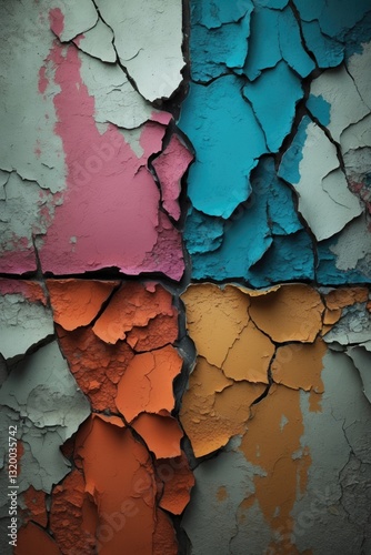 Grunge 3 Contrasting Colors Set Against Cracked Wall Background, Abstract Theme of Creative Conflicts Texture, Tripartite Negotiation Pattern Wallpaper