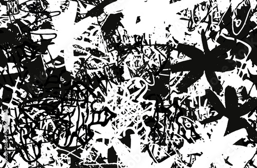 Grunge background black and white. Texture of chips, cracks, scratches, scuffs, dust, dirt. Dark monochrome surface. Old vintage vector pattern