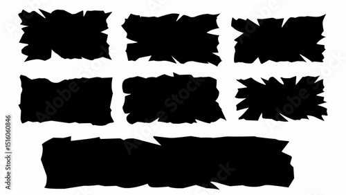 Grunge black torn paper shapes vector design set isolated. Perfect for edgy designs, posters, punk flyers, or digital collages with a raw and bold look