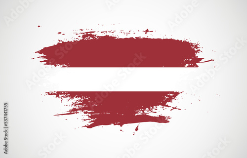Grunge brush stroke with the national flag of Latvia on a white isolated background