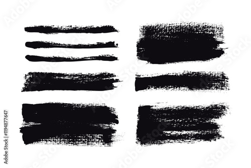 Grunge Brush Strokes and Lines. Creative brush lines with rough edges, dirty overlay silhouettes. Abstract freehand doodle line borders. Highlight splashes