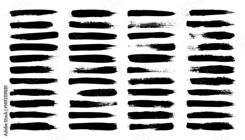 Grunge brush strokes, lines, ink smudges, hand-drawn scribble shapes. Handmade sketchy marks, acrylic stains, charcoal streaks. Paint textures, dry brush effect. Marker underline. Vector illustration