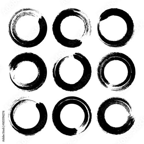 Grunge circles, brush strokes, lines, ink smudges, hand-drawn scribble shapes. Handmade sketchy marks, acrylic stains, charcoal streaks. Paint textures, dry brush effect. Vector illustration