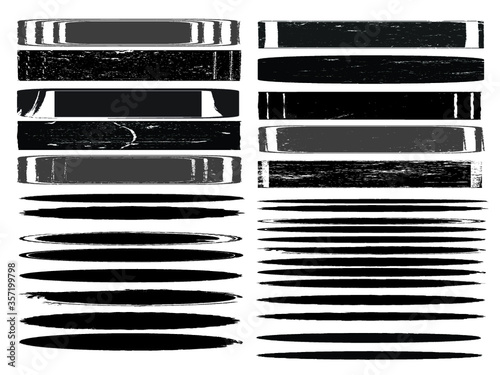Grunge Paint stripe . Vector brush Stroke . Distressed banner . Black isolated paintbrush collection . Modern Textured shape . Dry border in Black .