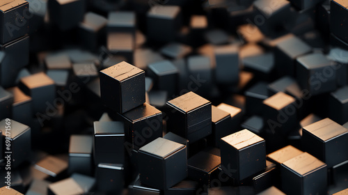 Grunge wood texture. Photo of many small black wooden cubes seamless parquet with cube pattern texture