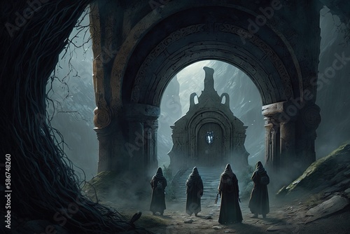 Guardians of Otherworldly Lore Sublimely Lodged Within A Mysterious Monastic Fortress Generative AI