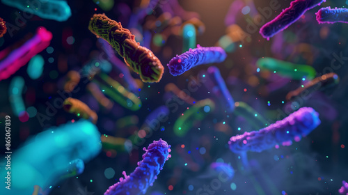 Gut bacteria or microbiota, showing the variety of microscopic organisms in our digestive tract that play a key role in health and digestion.
